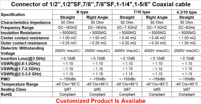 1/2のための同軸ケーブルのコネクター」、1/2 "のSF、7/8"、7/8" SFの1-1/4」泡のき線ケーブル